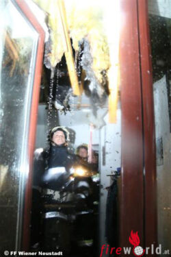 Die Mitglieder der Feuerwehr Neudörfl sprachen von einer "Flammenwand", als sie in der Leopold Braunstorfer Gasse aus den Fahrzeugen stiegen. Ein umfassender Angriff wurde rasch vorgenommen. Die gemäß Alarmplan mitalarmierten Feuerwehren Bad Sauerbrunn und Pöttsching unterstützten die Feuerwehr Neudörfl. In weiterer Folge wurden auch aus Wiener Neustadt das Atemluftfahrzeug, die Teleskopmastbühne und ein Großtanklöschfahrzeug angefordert.