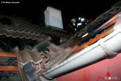 Durch den Vollbrand der Fassade wurden die an der Ostseite des Gebäudes liegenden Zimmer im Erdgeschoß verwüstet. Das Feuer griff durch den Dachvorsprung auf die Dachkonstruktion über und breitete sich in einem Hohlraum unter dem Dach rasant aus. Nur durch massiven Wassereinsatz kombiniert mit dem Abtragen des Daches konnte der Brand schließlich um ein Uhr unter Kontrolle gebracht werden. Einzelne Brandnester konnten nur abgelöscht werden, indem von innen mittels Einreißhaken und Kettensäge die Zwischendecke geöffnet wurde, damit das Wasser sein Ziel erreicht.