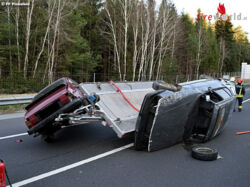 Bgld: Spektakuläres Szenario nach Unfall mit Pkw-Anhängergespann auf der A2