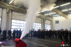 In den Pausen gab es die Möglichkeit die Stände der teilnehmenden Firmen zu besuchen und sich über den neuesten Stand der Technik zu informiert. Ein Praxisbeispiel gab es dann auch von der Fa. Firefog die in der Fahrzeughalle der FF Bad Fischau den Rauchzustand in der Halle nach einem Entstehungsbrand simulierte. In nicht einmal 5 Minuten war der obere Teil der Halle in dichtem Kunstnebel gehüllt.