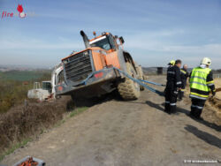 Aus unbekannter Ursache geriet der Fahrer eines 22-Tonnen-Radladers mit seinem Fahrzeug von einem Feldweg ab, und drohte einen Hang hinab zu rutschen. Um das schwere Baufahrzeug wieder auf sicheren Boden zu befördern, wurde die FF Großweikersdorf zu Hilfe gerufen.