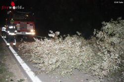 Noch während der Arbeiten im Augebiet, musste das Tanklöschfahrzeug 3 zu einer Intervention im Bereich der Zufahrt zum Aubad ausrücken. Mehrere Äste eines Baumes sind auf die Fahrbahn gefallen und mussten von der Feuerwehr entfernt werden. Anschließend wurde noch ein umgestürzter Bauzaun in der Staasdorfer Straße wieder aufgerichtet.