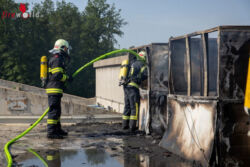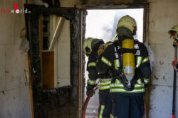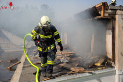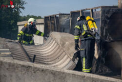 Nachdem der Brand unter Kontrolle gebracht werden konnte, musste – um zu den weiteren Glutnestern zu gelangen – die aus Holz bestehende Innenverkleidung sowie die Dämmstoffe manuell entfernt werden. Durch die hochsommerlichen Außentemperaturen und die Arbeiten mit schweren Geräten wurde gegen 16:30 Uhr entschieden, noch weitere Atemschutztrupps über die BAZ Baden anzufordern, worauf die Feuerwehren Günselsdorf und St. Veit alarmiert wurden. Zusätzlich zum anwesenden Atemluftfahrzeug Bad Vöslau wurde dann auch noch das Wechselladefahrzeug mit Atemschutzcontainer aus Baden Weikersdorf angefordert.