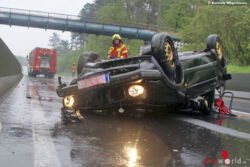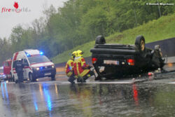 Ein Pkw-Lenker kam mit seinem Fahrzeug auf der Umfahrung B139 im Gemeindegebiet Pasching von der Straße ab, fuhr rund 100 Meter entlang der Böschung weiter, ehe das Auto über die Betonleitschiene abhob und nach einem Überschlag auf der Fahrbahn zum Liegen kam. Entgegen ersten Meldungen konnte kein Fahrzeugbrand festgestellt werden. Der Fahrzeuglenker wurde bei dem Unfall unbestimmten Grades verletzt und vom Rettungsdienst in ein umliegendes Krankenhaus abtransportiert. Die Feuerwehr Pasching stellte den Brandschutz sicher und führte die Aufräumarbeiten durch.