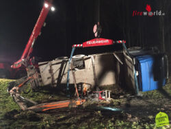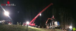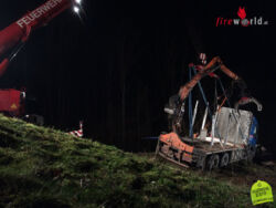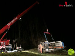 Summa Summarum wurden neben dem Kranfahrzeug, diversen Unterbauhölzern und etlichen Spanngurten auch noch zwei Greifzüge benötigt, um den Lkw wieder auf festen Boden zu bekommen. Gegen 23:00 Uhr war es aber dann geschafft und die Feuerwehr Steyr konnte mit den Aufräumungsarbeiten beginnen und die Heimreise nach Steyr antreten, wo dann noch die Wartung und Reinigung der Gerätschaften auf die Kameraden wartete. Der Technische Zug der FF Steyr bedankt sich bei der FF-Trattenbach für die gute Zusammenarbeit und deren Unterstützung recht herzlich.