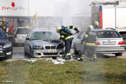 HÖRSCHING (OÖ): Während dem Brandeinsatz in Oftering wurde die Feuerwehr Freitagvormittag, 4. März 2016, zu einem Pkw-Brand auf einen Firmenparkplatz nach Hörsching (Bezirk Linz-Land) gerufen.
