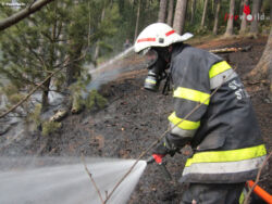 Mit mehreren Löschleitungen und Feuerpatschen (zum Ausschlagen der Flammen) gingen die Frauen und Männer der Löschtrupps in dem steilen Gelände vor. Damit das Löschwasser besser ins Erdreich eindringen kann, wurde Löschschaum in geringer Rate beigemengt. Leichter Wind erschwerte die Löscharbeiten.