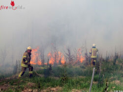Der angeforderte Hubschrauber unterstützte die Einsatzleitung bei der Lageerkundung und flog im Anschluss mehrere Überflüge mit Wasser zur Brandbekämpfung. Wasserentnahmestelle war der Thalersee nur ca. 2 Flugminuten entfernt. Um 18.39 Uhr konnte von der Einsatzleitung "Brand aus" gemeldet werden. Nach der erfolgten Brandbekämpfung und den Nachlöscharbeiten wird nunmehr seitens der Berufsfeuerwehr eine Brandwache gestellt, welche mit Sicherheit bis in die Abendstunden andauern wird.
