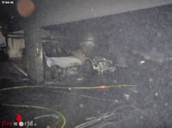 Über mehrere Zugänge wurden Löschleitungen unter Atemschutz vorgetragen, um den Brandherd in der massiv verrauchten, zweigeschossigen Garage möglichst rasch ausfindig zu machen. Die in Vollbrand stehenden Pkw konnten im unteren Geschoß ausfindig gemacht werden und wurden letztendlich mit zwei Löschleitungen abgelöscht. Zeitgleich durchsuchten weitere Atemschutztrupps die Tiefgarage nach Personen und kontrollierten angrenzende Stiegenhäuser der dazugehörigen Wohnhausanlage.