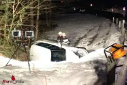 Die unverletzte Person konnte sich selber aus den Fahrzeug befreien und alarmierte Polizei und Feuerwehr. Als die FF Tragwein am Einsatzort ankam, wurden Beleuchtung, Brandschutz aufgebaut und mit der Bergung des Fahrzeuges begonnen. Mithilfe von LAST Tragwein konnte das Auto auf die Straße gehoben werden. Für diesen Zeitraum des Einsatzes wurde die B124 kurzfristig für den Verkehr gesperrt.