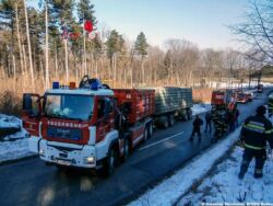 Dieser erste Versuch gelang und der Allrad-LKW zog den Traktoranhänger aus dem Bankett und weiter bis zum Ende der Steigung, wo der Anhänger wieder an den Traktor gekoppelt wurde und das Traktorgespann seine Fahrt fortsetzen konnte. Nachdem die Fahrbahn noch gereinigte wurde konnten die Feuerwehr-Kräfte um 13:35 Uhr wieder einrücken und die Einsatzbereitschaft herstellen.