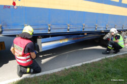 Nach einem Verkehrsunfall zwischen einem Pkw und einem Lkw wurde die Autolenkerin unbestimmten Grades verletzt und bereits vor Eintreffen der Feuerwehr vom Rettungsdienst ins Krankenhaus abtransportiert.