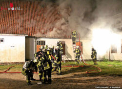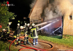 Da sich jedoch kleinere Brandnester in einer Deckenkonstruktion gebildet hatten, musste das Pfannendach an mehreren Stellen kleinflächig aufgenommen werden, um auch hier effektiv arbeiten zu können, sagte Weno. Um 02.08 Uhr hatten die Kräfte das Feuer unter Kontrolle. Um 02.38 Uhr konnte die Einsatzleitung "Feuer aus!" melden. Die Nachlösch- und Aufräumungsarbeiten dauerten bis 05.45 Uhr an. Eine Brandwache blieb bis zum späten Vormittag am Einsatzort zurück. Der ehemalige Tanzsaal und sämtliche Nebenräume brannten vollständig aus. In der Garage wurde ein VW-Käfer Cabrio und ein kleineres Boot aus GFK durch die Flammen zerstört. Der Wohntrakt des Gebäudes blieb unversehrt und konnte nach gründlicher Belüftung an die Bewohner übergeben werden. Der Brandort wurde von der Kriminalpolizei beschlagnahmt. Über die Brandursache und die Höhe des Schadens werden keine Angaben gemacht.