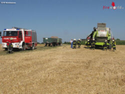 Oö: Kabelbrand an Mähdrescher auf einem Feld in Holzhausen