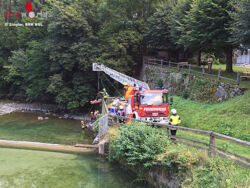Die Sanitäter forderten vor Ort die Freiwilligen Feuerwehren Marktschellenberg und Berchtesgaden nach, um den Patienten nach medizinischer Erstversorgung per Schleifkorbtrage und Drehleiter aus dem Flussbett zu heben. Das Rote Kreuz brachte den Mann im Anschluss mit dem Rettungswagen zum Salzburger Unfallkrankenhaus, Beamte der Berchtesgadener Polizei nahmen die Ermittlungen zum kuriosen Unfallhergang auf. Die Feuerwehr konnte nach rund einer Stunde wieder einrücken.