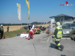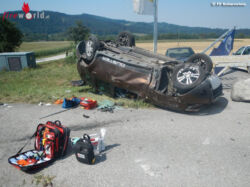 Zwei Pkw waren zusammengestoßten, wobei ein Auto am Dach zum Liegen kam. Beim Eintreffen der Feuerwehr waren die verletzten Personen bereits befreit. Die Feuerwehr Scharnstein sicherte die Einsatzstelle ab, unterstützte das Rote Kreuz bei den Versorgungsmaßnahmen und übergab im Anschluss die Einsatzstelle der örtlich zuständigen Feuerwehr Steinfelden, die nach Abschluss der Erhebungsarbeiten die Aufräumungsarbeiten durchführten. Einsatzende: 12:47 Uhr.