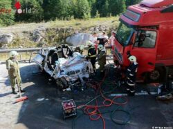 BAD AUSSEE (STMK): Aus noch ungeklärter Ursache ereignete sich am 31. August 2015 auf der B145 beim sogenannten „20er“ ein schwerer Verkehrsunfall zwischen einem Pkw und einem Lkw, wobei zwei Personen massiv eingeklemmt wurden.