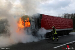 Deutschland: Brennende Sattelzugmaschine auf der A5 bei Alsfeld