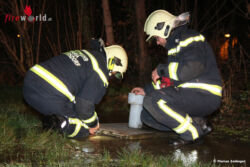 Dies bestätigten die eingetroffenen Mitarbeiter des örtlichen Wasserwerkes. Weil die betroffene Leitung derzeit keine Verbraucher anspeist, konnte das defekte Teilstück außer Betrieb genommen werden. Im Anschluss wurde im Revisionsschacht eine Tauchpumpe positioniert und der Wasserstand abgesenkt. Bis in der kommenden Woche die fachliche Reparatur erfolgt, sorgt eine Absperrung der teils eingebrochenen Grünfläche dafür, dass sich keine Passanten im Gefahrenbereich bewegen. Nach Abschluss sämtlicher Sicherungsarbeiten konnten die 16 Mitglieder, mit deren drei Fahrzeugen, wieder einrücken.