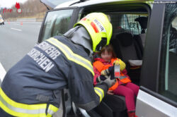 Trotz des total beschädigten Fahrzeuges kamen alle drei Insassen mit dem Schrecken davon. Das mitfahrende Kleinkind machte einen sehr geschockten Eindruck, doch da kam der „Trauma-Bär“ der Freiwilligen Feuerwehr Mooskirchen zum Einsatz – es gelang unseren Kameraden das Kind über eine spielerische Art mit dem Traum-Bär auf zu muntern bzw. dieses Schockerlebnis dadurch besser zu verarbeiten. Von der Feuerwehr wurde die Unfallstelle abgesichert und die ausgeflossenen Treibstoffe fachgerecht gebunden.