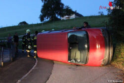 Oö: Feuerwehr stellt davon gerollten und umgestürzten Taxi-Bus wieder auf