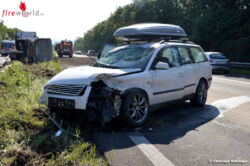 Im verunfallten Pkw war ein Vater mit seinem Sohn gerade vom Urlaub nach Hause unterwegs, als sie um 8.40 Uhr von einem Lkw mit Reifenplatzer gestreift wurden. Die Familie hatte großes Glück. Der Pkw wurde zwar schwer beschädigt, aber die Insassen kamen mit leichten Verletzungen davon und wurden in das Linzer Unfallkrankenhaus eingeliefert. Der Anhänger des Lkw kippte um.