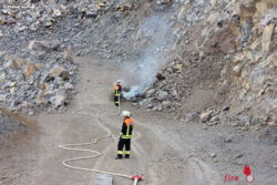 MÜCKE (DEUTSCHLAND): Eine dreistündige Großübung fand kürzlich im Basaltwerk Gerbig nahe dem Mücker Ortsteil Ober-Ohmen statt. Das Szenario unter dem Titel „Basaltfeuer“ sah eine Detonation von Fundmunition vor und rief rund 150 Einsatzkräfte von Feuerwehr und Deutschem Roten Kreuz auf den Plan.