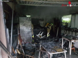 "Diese Küche einige Regale und andere abgestellte Gartengeräte befanden sich bei unserem Eintreffen in Vollbrand", berichtet die Feuerwehr. Unter vorname zweier C-Löschleitungen unter Atemschutz konnte der Band innerhalb kürzester Zeit unter Kontrolle gebracht werden. Bereits nach 15 Minuten konnte "Brand aus" gegeben werden und es wurde mit der Belüftung der Garage begonnen.