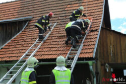 SPIELBERG (STMK): Am 22. August 2016 gegen 11:00 Uhr wurden die Feuerwehren Spielberg und Knittelfeld zu einer Menschrettung in die Gemeinde Spielberg gerufen. Aus nicht weiter bekannter Ursache brach eine Person auf einem Dach einer Scheune ein.