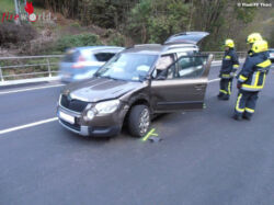 Nach der Alarmierung rückten sofort 7 Kameraden mit dem RLF-A 2000 und dem LFB-A auf die B20, nahe der Margarethenhütte, aus. Nach Absicherung der Unfallstelle und Totalsperre der Bundesstraße wurde das beschädigte Fahrzeug mittels Abschleppachse zu einem Abstellplatz transportiert. Nachdem ein Reifen des Lkw beschädigt und die Weiterfahrt nicht mehr möglich war, unterstützten die Kameraden der Feuerwehr den Kraftfahrer beim Reifenwechsel. Der Autolenker wurde beim Eintreffen der Feuerwehr bereits vom Roten Kreuz erstversorgt, anschließend wurde er mit Verletzungen unbestimmten Grades ins Krankenhaus eingeliefert. Nachdem die Fahrbahn gereinigt wurde, konnte man den Einsatz gegen 17:35 Uhr schließlich erfolgreich beenden.