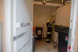 Bei Eintreffen an der Einsatzstelle waren bereits Polizeieinsatzkräfte vor Ort und teilten dem Feuerwehreinsatzleiter mit, dass es im Müllraum des dortigen Seniorenwohnhauses eine starke Rauchentwicklung gibt. Umgehend wird ein Atemschutztrupp zur weiteren Erkundung vorgeschickt. In einem großen Restmüllbehälter war ein Schwel-Brand ausgebrochen.