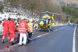 LEONSTEIN (OÖ): Am Vormittag des 5.2.2017 wurde die Freiw. Feuerwehr Leonstein zu einem schwerem Verkehrsunfall alarmiert. Im Bereich Steyrdurchbruch krachte ein Pkw mit hoher Geschwindigkeit gegen eine Betonwand.