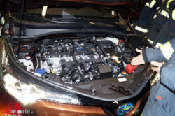 Anhand eines eigens für Schulungszwecke verwendeten Unfallwagens mit Hybridantrieb konnten sich die Kameraden auch gleich live ein Bild über die Einbaulagen der Komponenten und vor allem auch über die Sicherheitsvorkehrungen seitens Toyota informieren. Toyota selbst war ein Pionier dieser Technik und gilt nach wie vor als Maßstab für Hybridantrieb. Daher war es natürlich auch ein besonderes Highlight, dass am Ende auch unter die Motorhaube der neuesten Toyota-Modelle geguckt werden durfte, wo sich aktuell die modernsten Antriebe dieser Art finden.