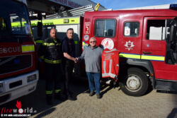 Der aus England stammende Verein sammelt Spenden und bringt mit Freiwilligen (allesamt aktive / pensionierte Feuerwehrangehörige) Fahrzeuge, Ausrüstung und Know-How in hilfsbedürftige Regionen auf der ganzen Welt. Die Kameraden machten auf der langen Fahrt von England nach Moldawien für eine Nacht Halt in Wiener Neudorf, um sich hier zu stärken und den Fahrern eine ausgiebige Ruhephase zu ermöglichen.