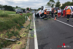 FRANKENMARKT (OÖ): Am 12.06.2017 um 14:19 Uhr wurde die Freiw. Feuerwehr Frankenmarkt zu einem Verkehrsunfall mit eingeklemmter Person auf der B1 Richtung Strasswalchen alarmiert. Ein Minivan und ein Kleintransporter waren frontal zusammengestoßen. Ein weiterer Pkw wurde leicht beschädigt.