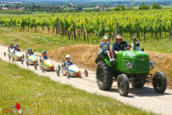 Der ebenso für Vormittag geplante Seifenkistenbewerb musste witterungsbedingt auf Mittag verschoben werden, da durch die Regenfälle in der Nacht die "Rennstrecke" verschmutzt war. Hier waren am Vormittag einige Mitglieder der Freiwilligen Feuerwehr Feuersbrunn im Einsatz, um die Strecke in der Kellergasse "Gmörk" von Schlamm und Geröll zu säubern, ehe dann gegen Mittag die ersten Starter den Seifenkistenbewerb absolvieren konnten.