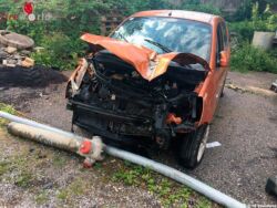 Nö: Pkw kracht gegen eine Laterne und einen Hydranten auf der B60
