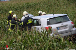 Oö: Pkw bei glimpflichen Unfall mit Lkw in Gunskirchen in Maisfeld gelandet