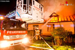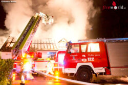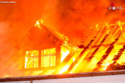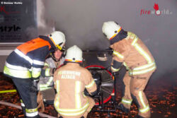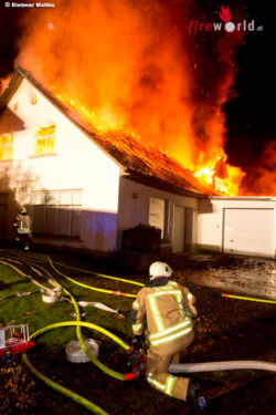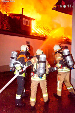 Eine Nachbarin hatte Feuerschein in dem Gebäude in Altach beobachtet. Die Frau alarmierte kurz nach Mitternacht die Feuerwehr. Es kam zu einem Großeinsatz, zu dem auch die Feuerwehren Mäder, Götzis und Hohenems mit Drehleiter ausrückten. Beim Eintreffen der Einsatzkräfte stand der Dachstuhl in Vollbrand. In dem Gebäude lagerten Wärmedämmstoffe und diverse Kleber.