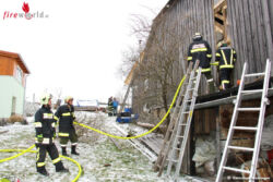 Bei Flämmarbeiten entstand ein Glimmbrand in einer Zwischendecke am Holzanbau des Wohnhauses. Die Mutter des Hausbesitzers entdeckte zufällig den Brand und alarmierte die Einsatzkräfte.