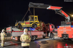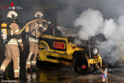 LINZ (OÖ): Eines der Wahrzeichen von Linz, der gelbe Bummelzug, ist am Samstag am Abend, 9. Dezember 2017, nach ‚Dienstschluss‘ in seiner Garage an der oberen Linzer Donaulände in Flammen aufgegangen und vollkommen ausgebrannt.