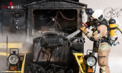 Der elektrisch betriebene Zug begann, nachdem er zum Laden an die Stromversorgung angeschlossen worden war, zu rauchen und fing Feuer. Der Mitarbeiter begann noch mit ersten Löschversuchen und alarmierte umgehend die Feuerwehr. Der Brand breitete sich aber derart rasch aus, dass der Zug bei Eintreffen der Berufsfeuerwehr bereits in Vollbrand stand.