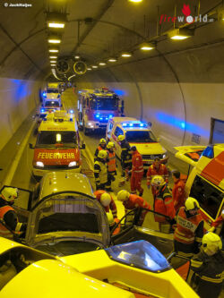 Oö: Verkehrsunfall mit eingeklemmter Person, Tunnel Kienberg, A9