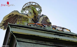 MÜNCHEN (BAYERN): Am Vormittag des 3. Juni 2019 hat die Belegschaft eines Gymnasiums in München festgestellt, dass zwei Fahrräder in zirka 18 Meter Höhe am Uhrenturm der Schule hingen.