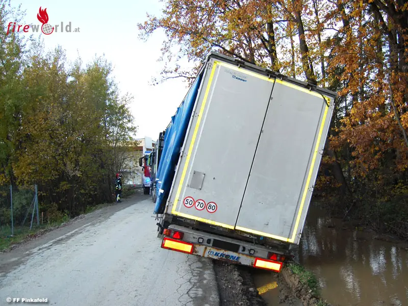 Durch die heftigen Regenfälle in den letzten Tagen war das Bankett jedoch aufgeweicht. Der Sattelzug, der 22 Tonnen Stahl geladen hatte, versank und drohte seitlich umzukippen.