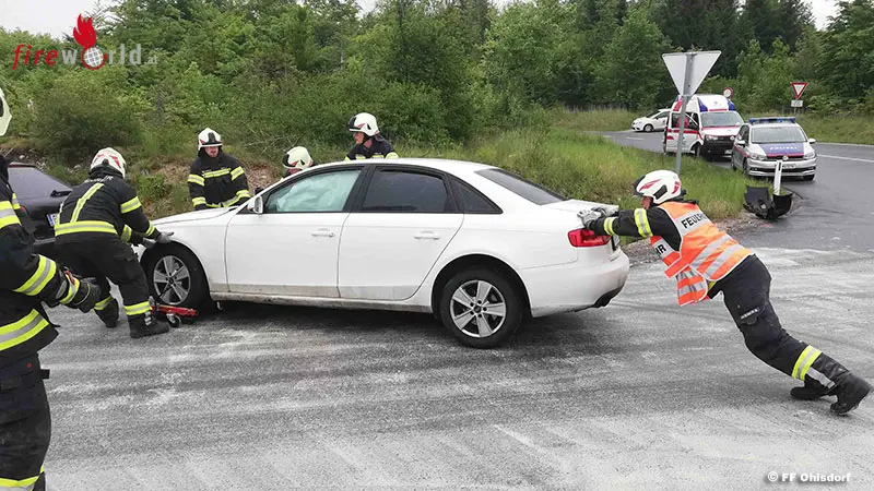 Oö: Bergungsarbeiten nach Pkw-Kreuzungsunfall in Ohlsdorf