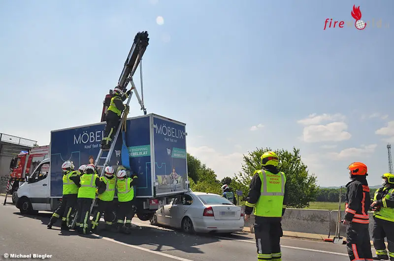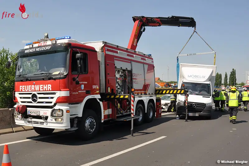 WIENER NEUDORF (NÖ): Erneut wurde die Mannschaft der Freiwilligen Feuerwehr Wiener Neudorf am 18. Mai 2020 zu einem Verkehrsunfall auf die Südautobahn (A2) gerufen.