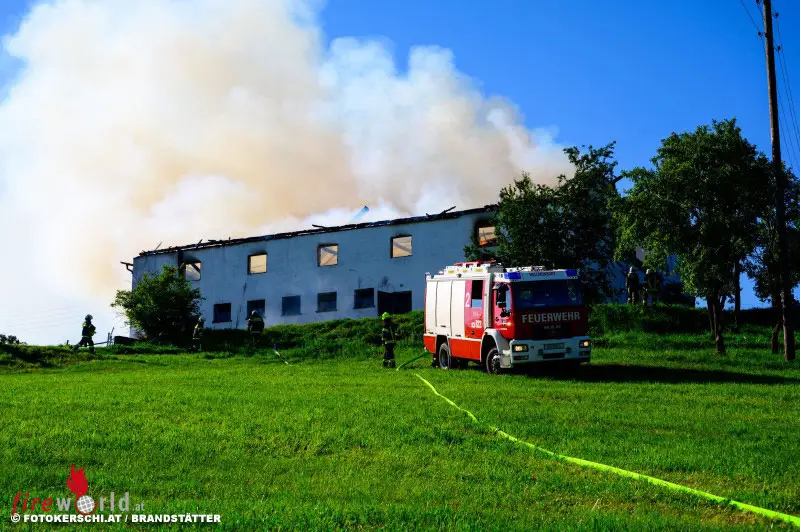 ALTENBERG BEI LINZ (OÖ): Zu einem Brand eines landwirtschaftlichen Objektes in Oberbairing, Gemeinde Altenberg bei Linz, wurden am Nachmittag des 12. August 2020 insgesamt neun Feuerwehren alarmiert. Schon bei der Anfahrt wurde vom Einsatzleiter der Feuerwehr Oberbairing, HBI Manfred Leitner, Alarmstufe 2 ausgelöst, da der Dachstuhl bereits im Vollbrand stand.