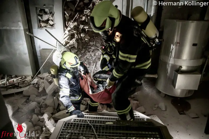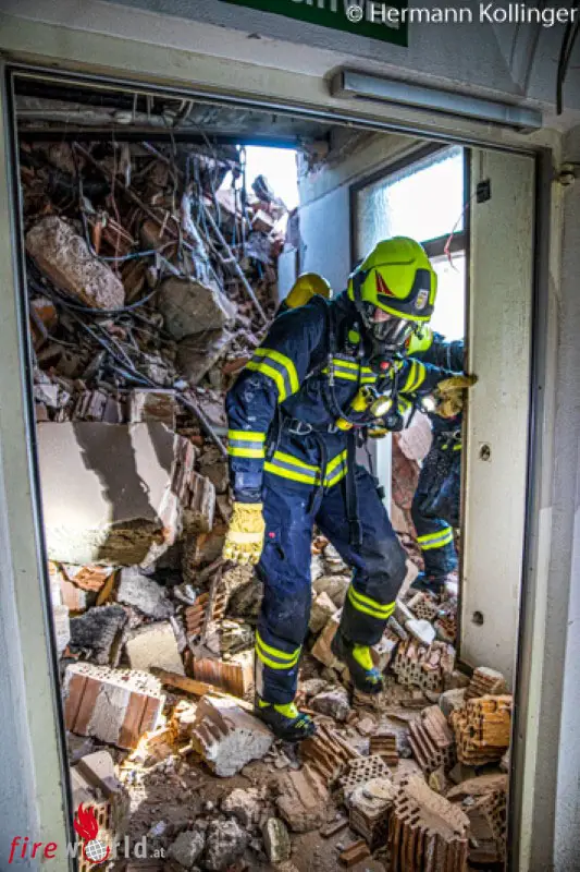 Oö: Gefahrgutunfall mit verletzter Person im Abbruchhaus als Übungsthema