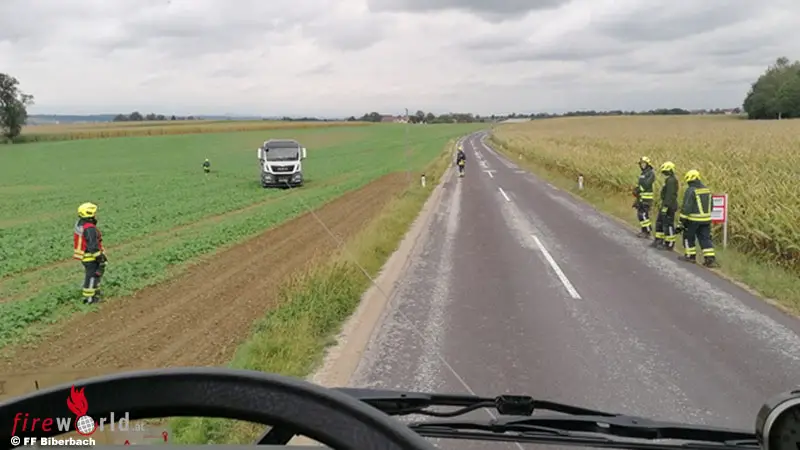 Durch ein Ausweichmanöver kam ein Milchsammelwagen, der in Richtung Biberbach unterwegs war, von der Landesstraße ab und kam nach ca. 50 Metern im angrenzenden Feld zu stehen. Glücklicherweise blieb der Lenker dabei unverletzt, auch der LKW nahm keinen Schaden. Versuche, das Feld selbstständig zu verlassen, scheiterten jedoch aufgrund des aufgeweichten Bodens, wodurch die Freiwillige Feuerwehr Biberbach zur Bergung alarmiert wurde.